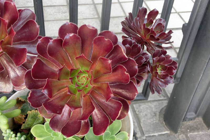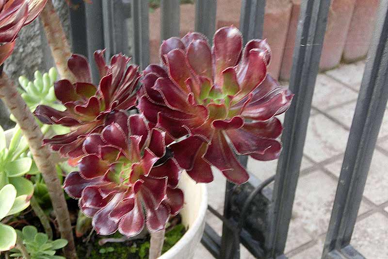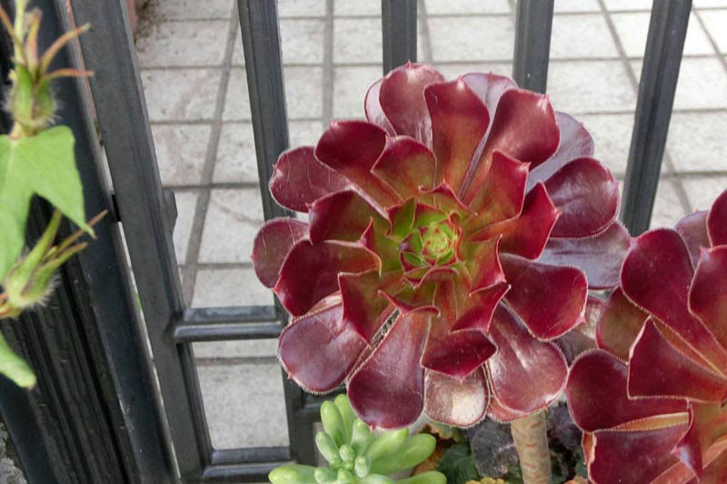 黒法師 投稿日時: 2015年9月14日 投稿者: shin 今朝は何も撮ってきていなかったものか、お隣のクロホウシを撮らせて頂きました。 まるで花に見える葉っぱ、綺麗な色合いの多肉植物ですよね。 1)「クロホウシ(黒法師)」 ベンケイソウ科アエオニウム属 別名:サンシモン。 2)この植物、日当たりの良し悪しによって葉の色合いが違ってくるそうですね。 3)原産地は、アフリカ北西部にあるカナリー諸島、北アフリカなど、穏やかな地中海性気候の地域だそうです。