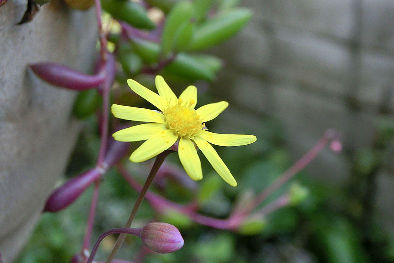 紫月 投稿日時: 2015年10月29日 投稿者: shin 今回のお花は、我が家で咲いていた紫月です。 可愛らしいお花なのですが、多肉性の植物で細い茎の先に花が咲くものか、揺れて撮り辛かったです。 その為、ピントがみな甘いですね。 1)「シゲツ(紫月)」 キク科セネキオ属の多肉性宿根草。別名:ルビーネックレス 2)アフリカ原産のお花で、乾燥に強い植物ですが、逆に過湿に弱いです。 3)多肉性の葉っぱを見ているとキク科とは思えませんが、このお花を見ると・・なるほどキク科だなって思いますね。