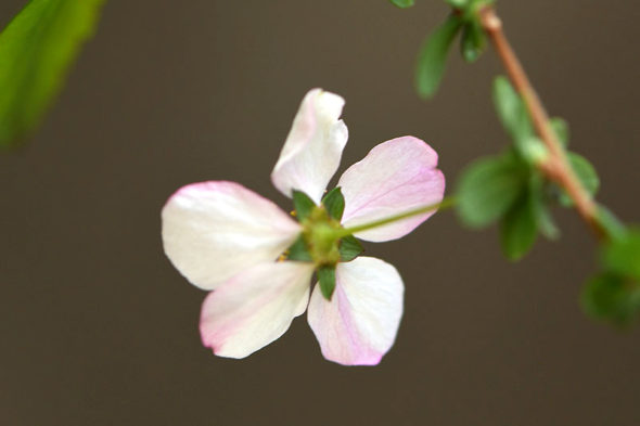 我が家のピンクのユキヤナギが、2-3輪だけですが、咲いていました。