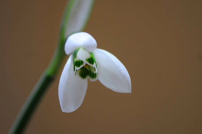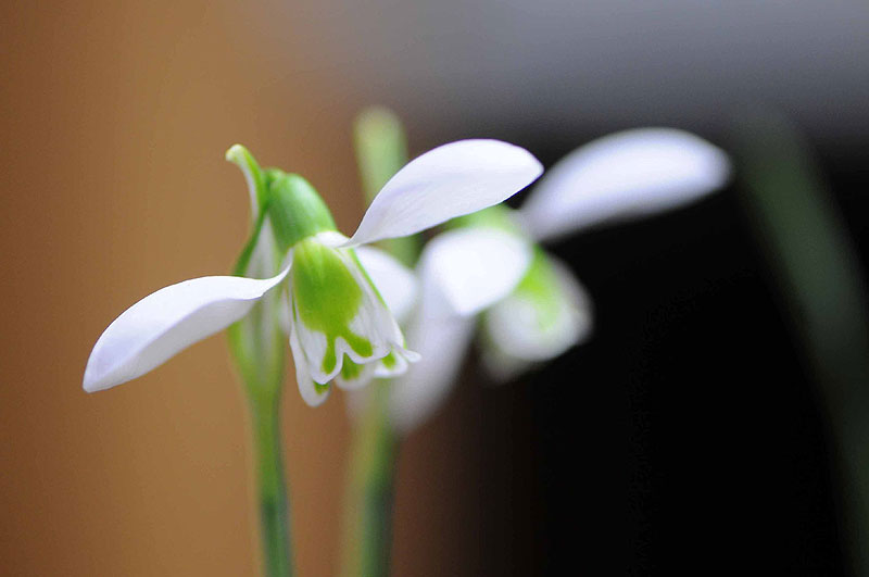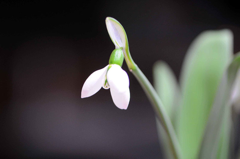 今にも咲きそうでなかなか咲かない我が家のスノードロップを部屋に入れてみると