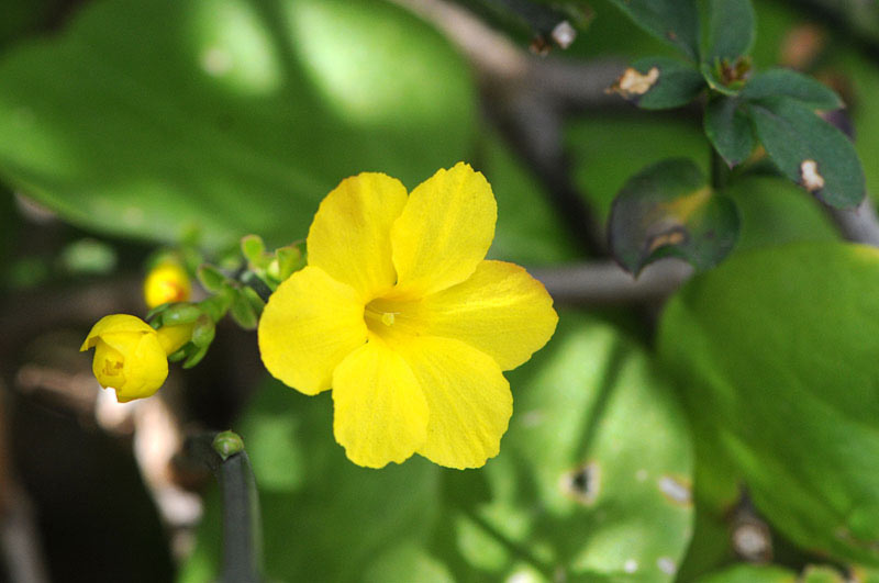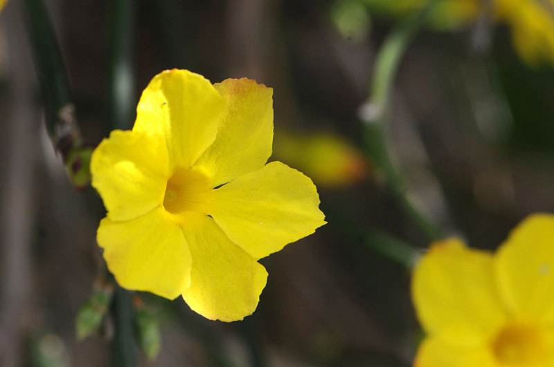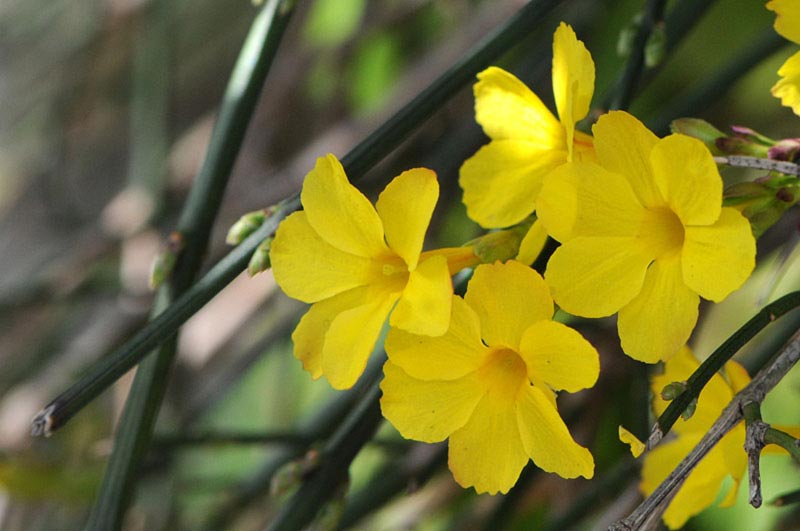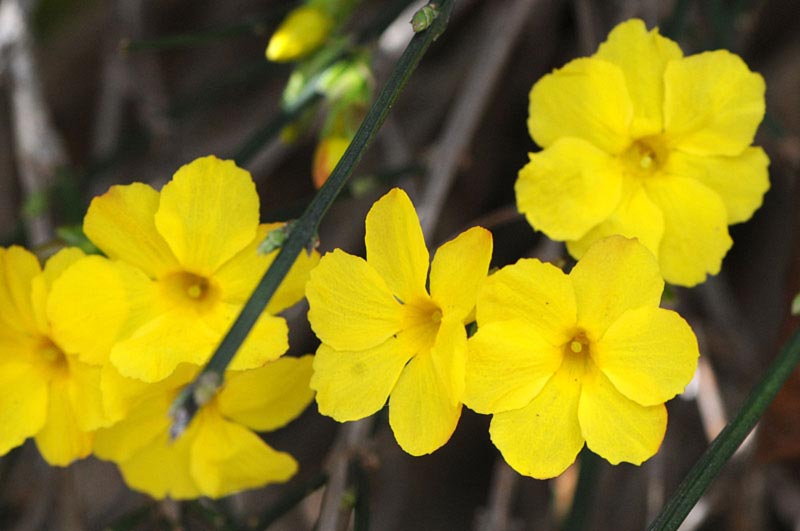 3)中国の北部・中部の原産で、中国語での正式名が「迎春花」(インチュンホヮ)で、春先一番に咲く花として知られているそうですね。日本へは江戸時代に導入されたそうです。