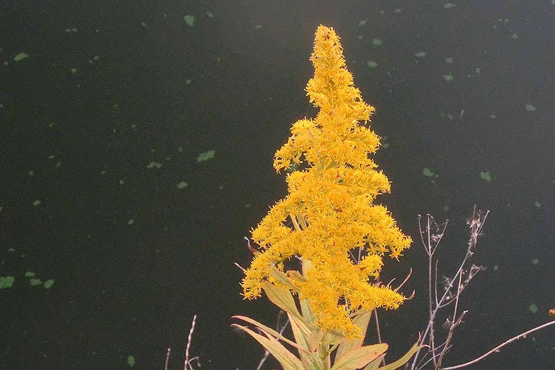朝日を撮っている公園の池の土手に生えていたセイダカアワダチソウです。