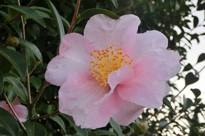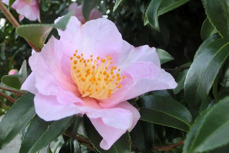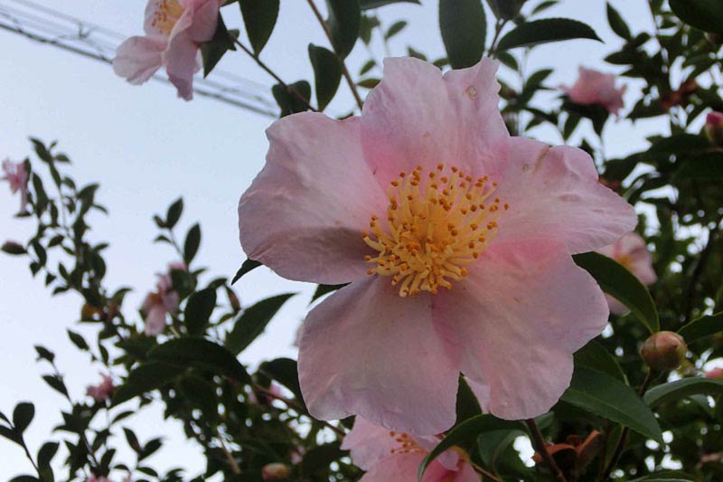 淡いピンクの山茶花、素敵な色合いでしょう。