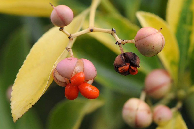 マサキの実、オレンジ色の種子が見えて、可愛いですね♪