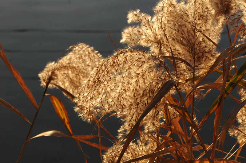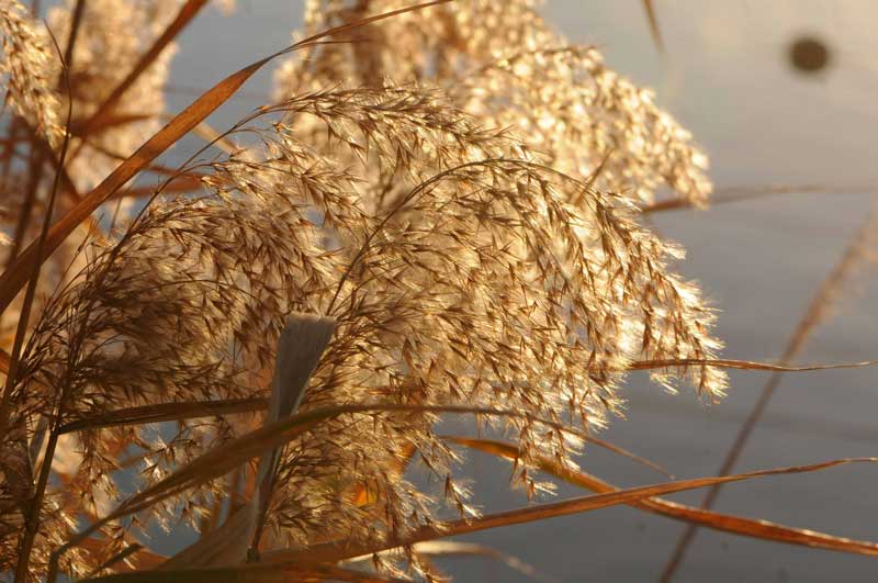 今回は、朝日を撮っている公園で実っていた葦とススキです。