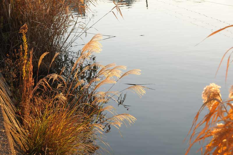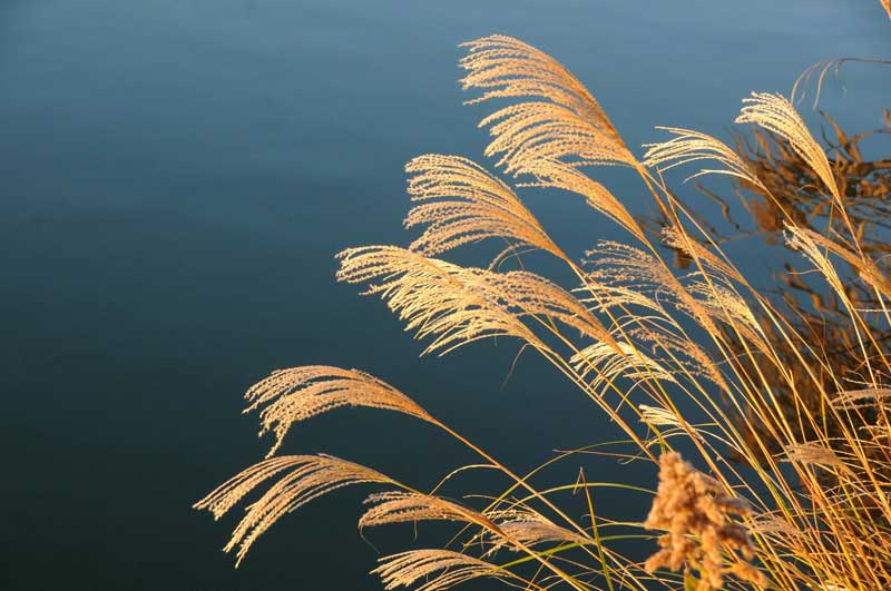 水辺の風情には日本の葦の方が似合っていますね。