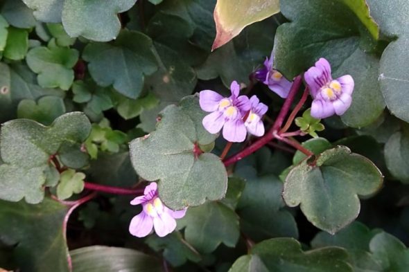 1) 「ツタバウンラン(蔦葉海蘭)」 オオバコ科ツタバウンラン属のつる性多年草。