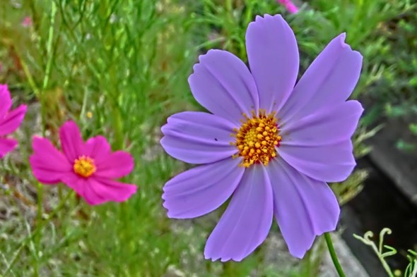 3) のコスモスは薄紫に見えますが、「HDRアート」 機能でこういう色になったのですか?