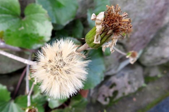 今はツワブキもこういう綿毛になっているのを見かけますね。