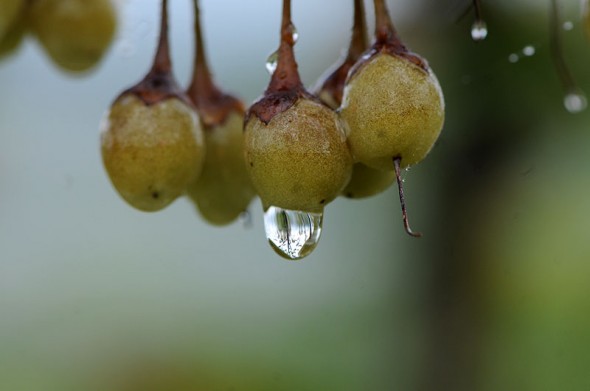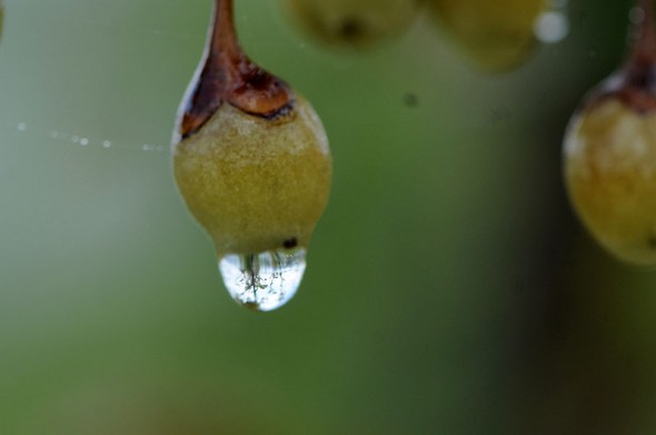 1)こちらは、「エゴノキ」の実に付いた雫です。