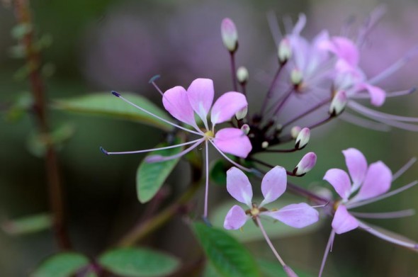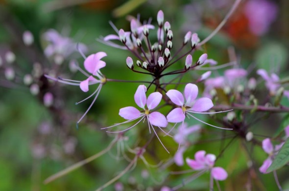 追記:こちらのお花「セイヨウフウチョウソウ (西洋風蝶草)」 フウチョウソウ科 別名: クレオメソウ と言うお花だそうです。