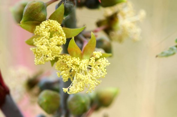 追記:こちらは蕾では無く、雄花だそうです。種子は有毒ですが、その種からは、「ひまし油(蓖麻子油)」が取れるそうですね。