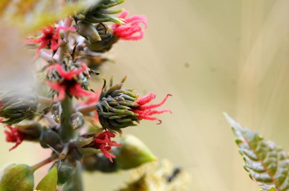 追記:こちらは「トウゴマ(唐胡麻)」 トウダイグサ科 別名:ヒマ(蓖麻)と言う植物で、こちらのお花が雌花だそうです。