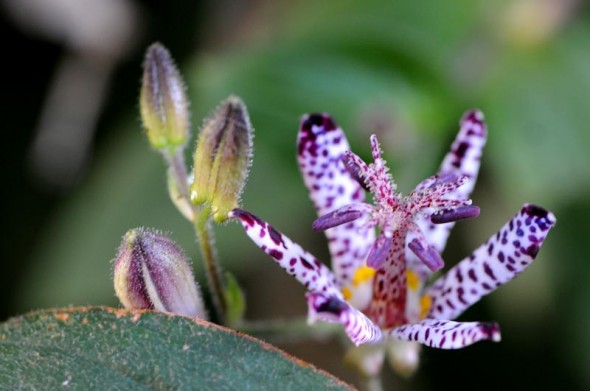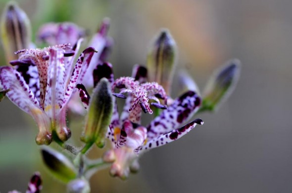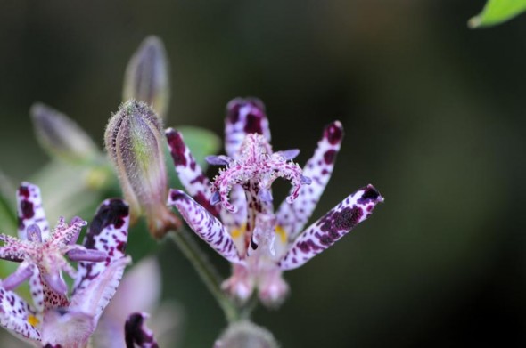 紫蘭と同じ場所に植えているのですが、春には紫蘭が咲いて、秋にはこのホトトギスが咲くのですよ。