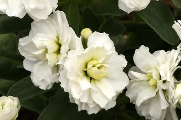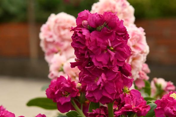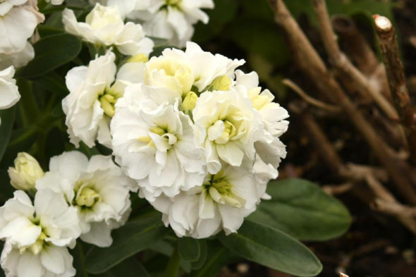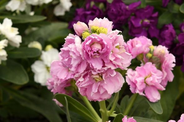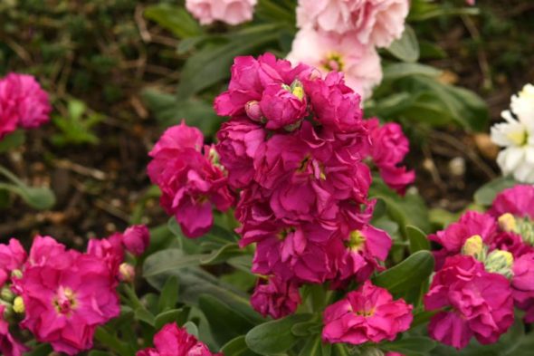 3) 主に栽培されるのは、一年草のマッティオラ・インカナ種を品種改良した矮性で分枝性も良い品種が流通しているそうですね。