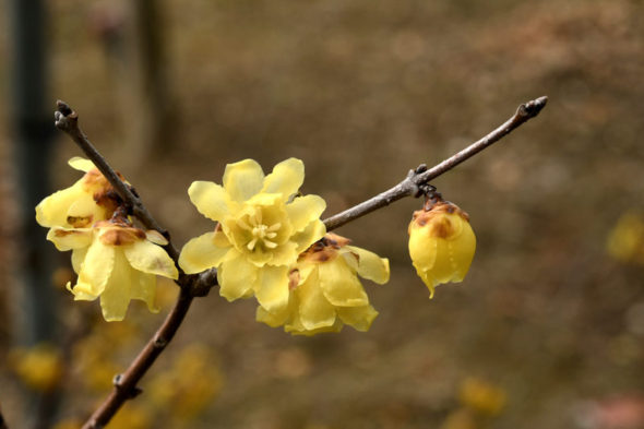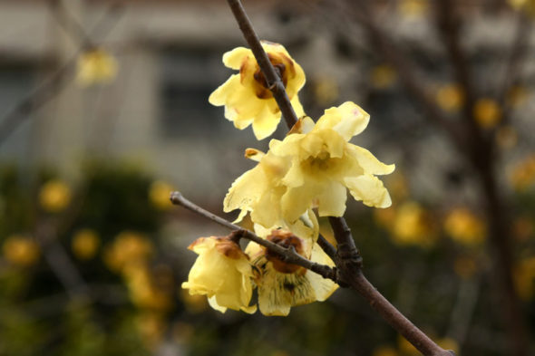 4) 基本種のロウバイよりは花期が早く、園芸種だけに花も大きくて美しいため、こちらの方が多く植栽されているようですね。