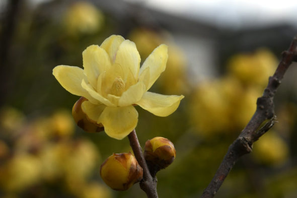 1) 「素心蝋梅(ソシンロウバイ)」 ロウバイ科ロウバイ属の落葉低木。