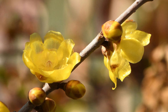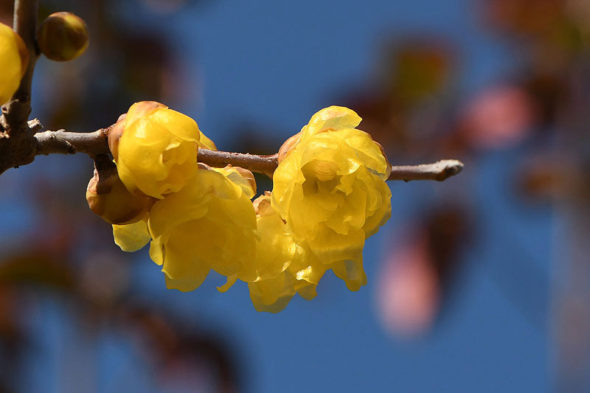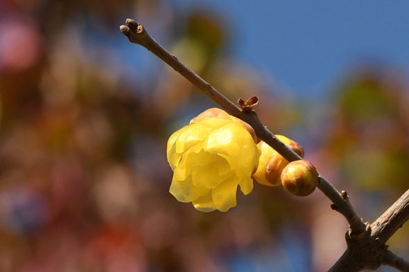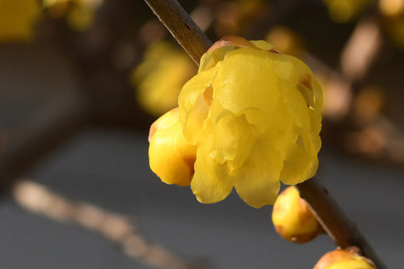 1) 「フクジュロウバイ(福寿蝋梅)」 ロウバイ科ロウバイ属の落葉低木。