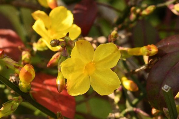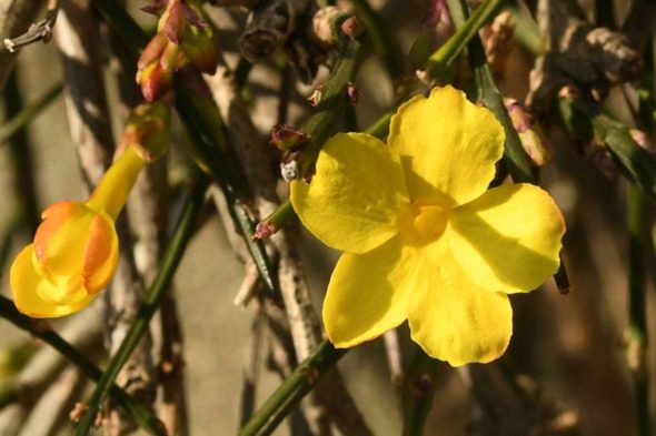 1) 「オウバイ(黄梅)」 モクセイ科ソケイ属の半つる性落葉低木。