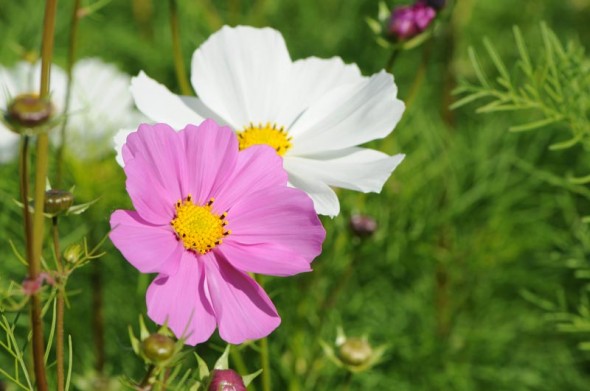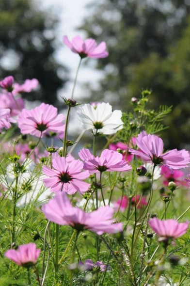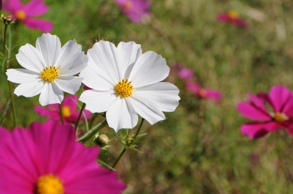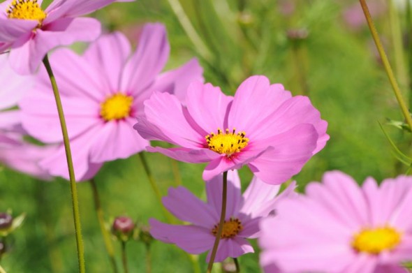 コスモスたち、色によって、少しずつ雰囲気が違いますね。