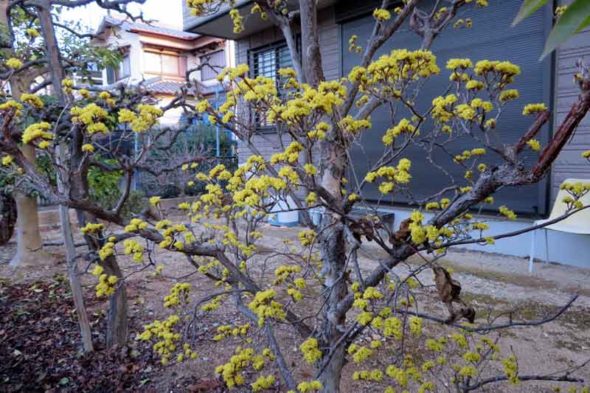 1) 「サンシュユ(山茱萸)」 ミズキ科ミズキ属の落葉小高木。別名:ハルコガネバナ(春黄金花)、アキサンゴ(秋珊瑚)等