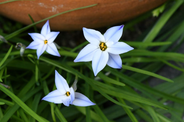 1) 「ハナニラ(花韮)」 ヒガンバナ科ネギ亜科ハナニラ属の多年草。別名:イフェイオン、ベツレヘムの星
