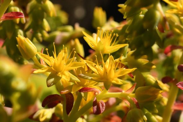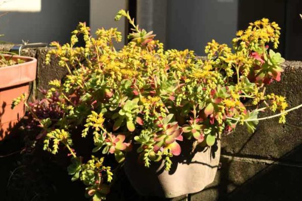 2) メキシコ原産で、比較的耐寒性もあり、春になると黄色の花がたくさん咲きますので、セダムの中でもよく栽培されている様ですね。