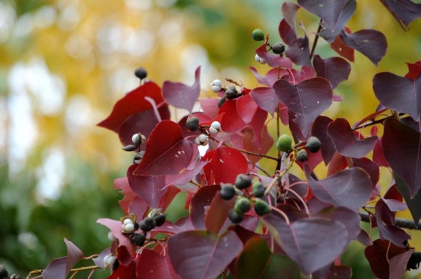 ナンキンハゼは、黒い皮がとれて、白い種子が見えているのもありますね。