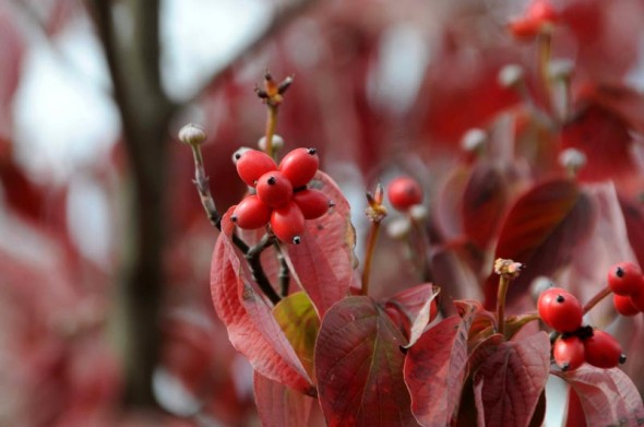 ナンキンハゼもハナミズキも、葉っぱが赤く色付いていますね~。