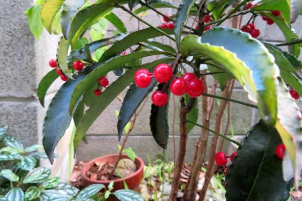 十両に千両、それに万両の白実品種などがあります。