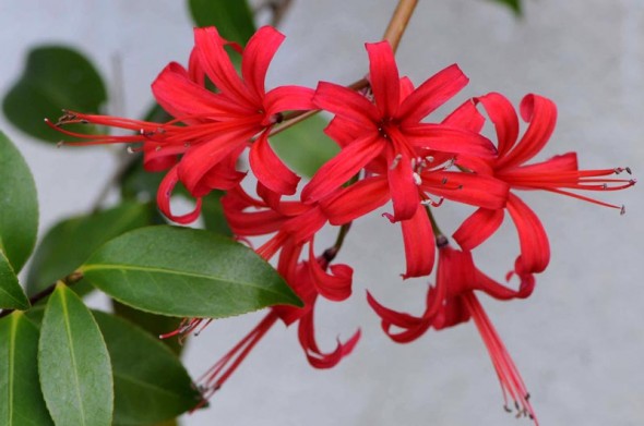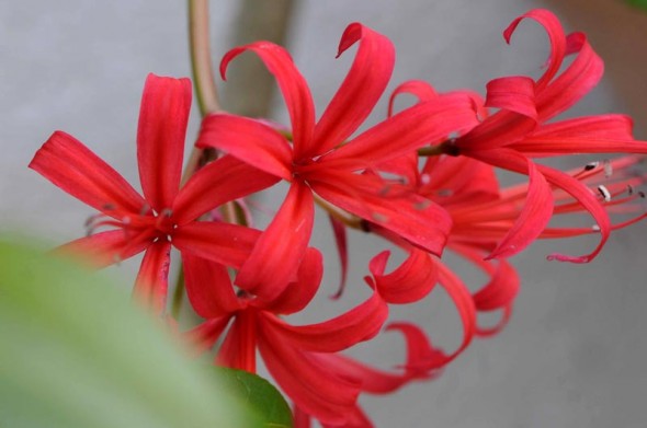 ネリネ 投稿日時: 2012年11月24日 投稿者: shin 今朝もお天気が悪く、花散策の散歩はせず帰って来ました。 今回掲載のネリネ、何時もお花を撮らせて頂いているお宅のなのですが、違う色のもあるものか、それも一緒に掲載したかったのですがね。この色以外は庭の中で撮る事が出来ませんでした。 1)「ネリネ」 ヒガンバナ科 別名:ダイアモンドリリー 2)このお宅には、真紅以外にもピンクと紫のネリネがあるのですが・・。