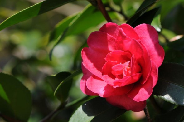 1)「サザンカ(山茶花)」 ツバキ科の赤で八重のお花です。