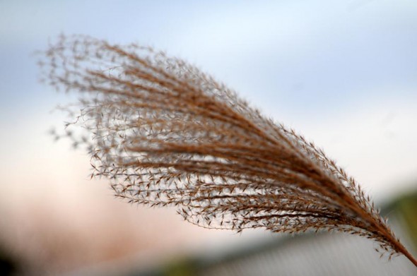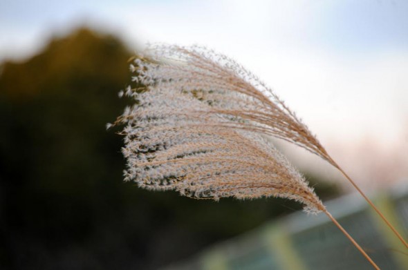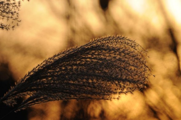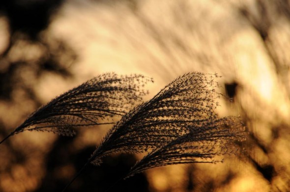4)こちらは順光で撮った同じススキの穂です。随分と感じが変わりますね。