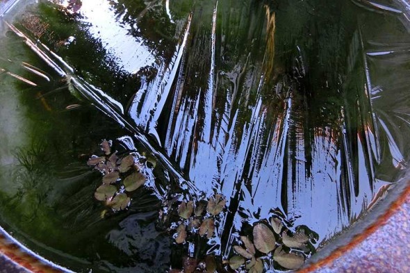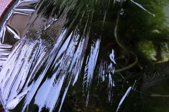 7)こちらは今朝、早朝散歩から帰って来た時に水連鉢に張っていた氷です。