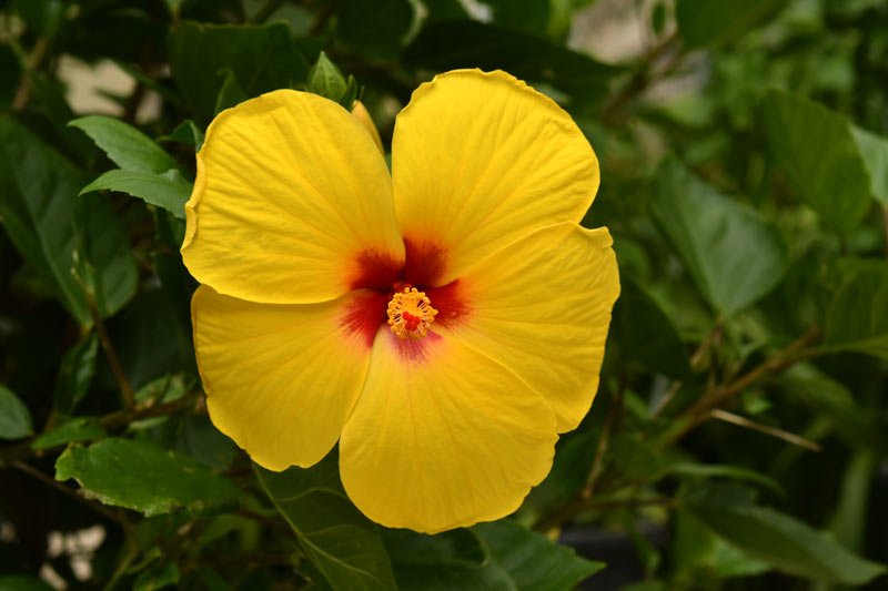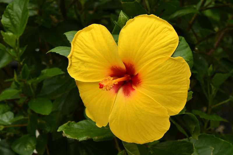 鮮やかな色合いの黄色で、奇麗なハイビスカスですよね。