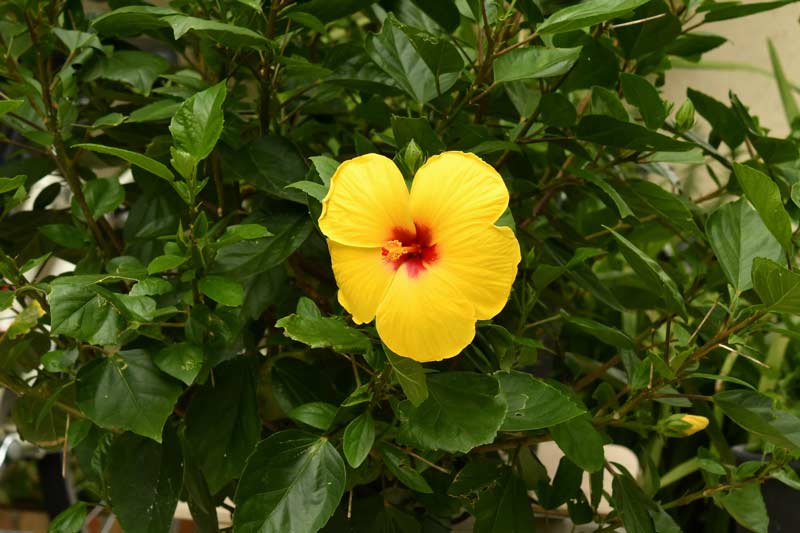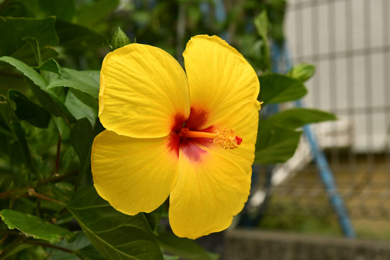 ご近所で黄色の奇麗なハイビスカスが元気に咲いていました。でも、咲いていたのは一輪だけで寂しい感じですかね。