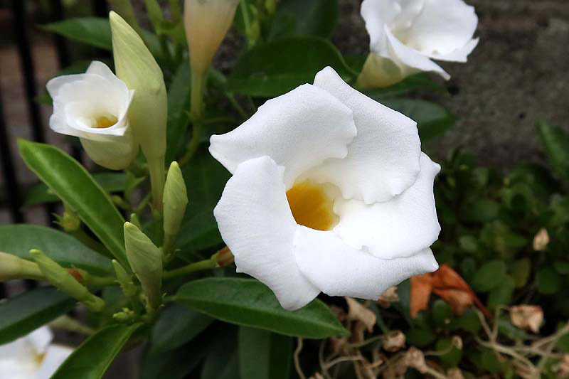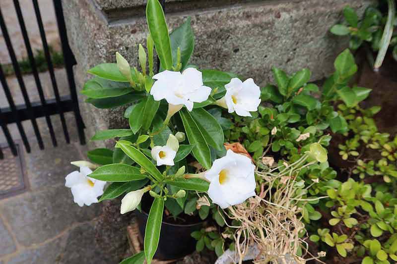 白い花のマンデビラ、清楚な感じで素敵ですよね。