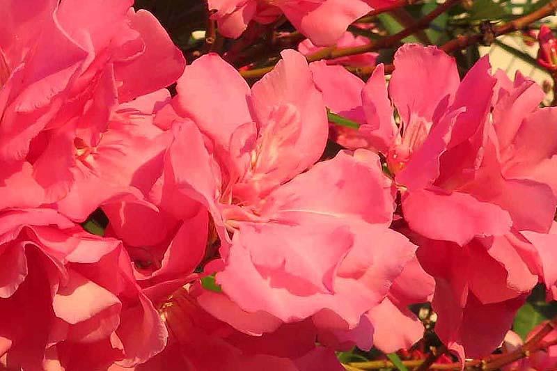華やかな色合いのキョウチクトウ、ピンクの八重ですかね。