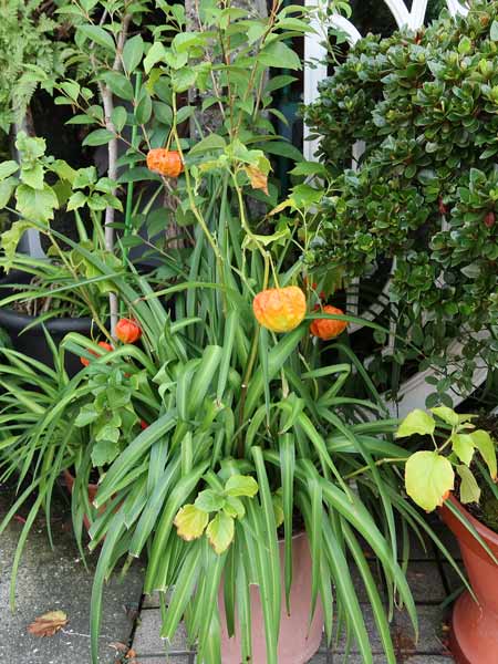 ホオズキの実が綺麗な色になっていますね。