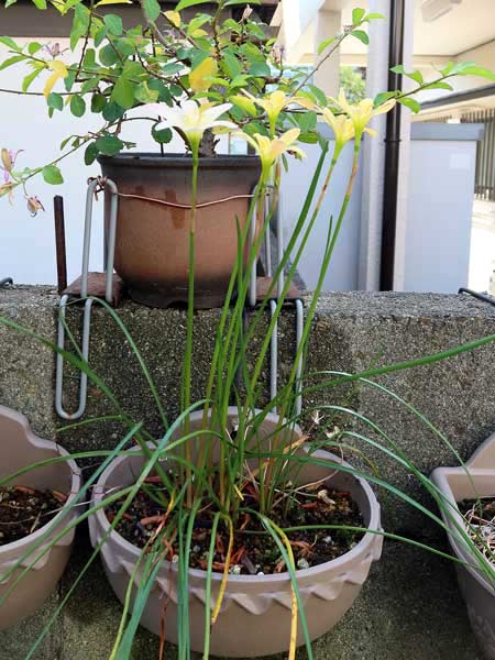 2) このお花、ゼフィランサス・シトリナ(黄色)とタマスダレ(白)の交配種で、19世紀にイギリスで作出されたお花だそうです。