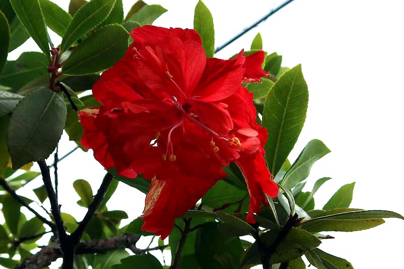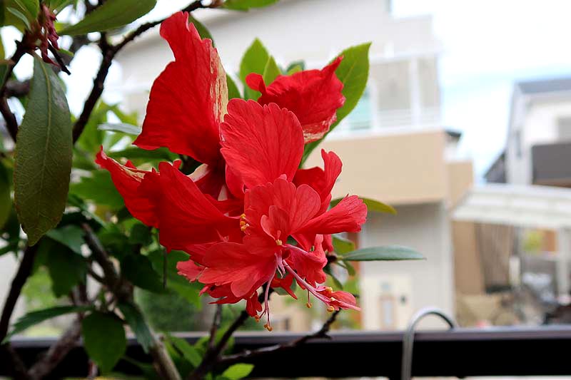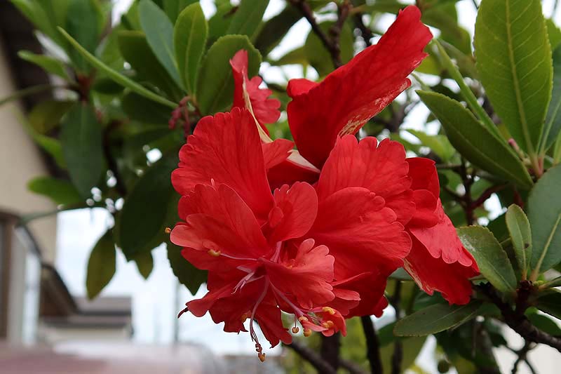 今回は、昨日掲載の原種系ガーベラを撮らせて頂いたお宅で咲いていた八重と言うか、二段咲きになったハイビスカスの掲載です。