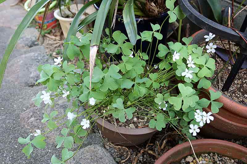 我が家で育てているシロバナイモカタバミの掲載です。イモカタバミ(芋片喰)の白花種ですが、普通のイモカタバミ(芋片喰)あるはずなのですが、何処へ行ったのか見当たりません。