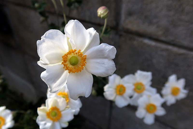 今回は、我が家で咲いていたシュウメイギクの白花種です。濃いピンクのお花は、矮性品種ですが、こちらは草丈も高く、たくさんの花を咲かせてくれます。