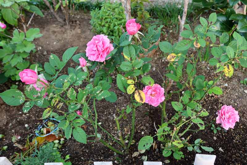 3) ミニバラは、木立ち性で、ロサ・キネンシス‘ミニマ’の小型の性質を受け継ぐバラで、コンパクトな株に極小輪から中小輪の花を咲かせ、環境がよければ、春から秋まで咲き続けるそうです。
