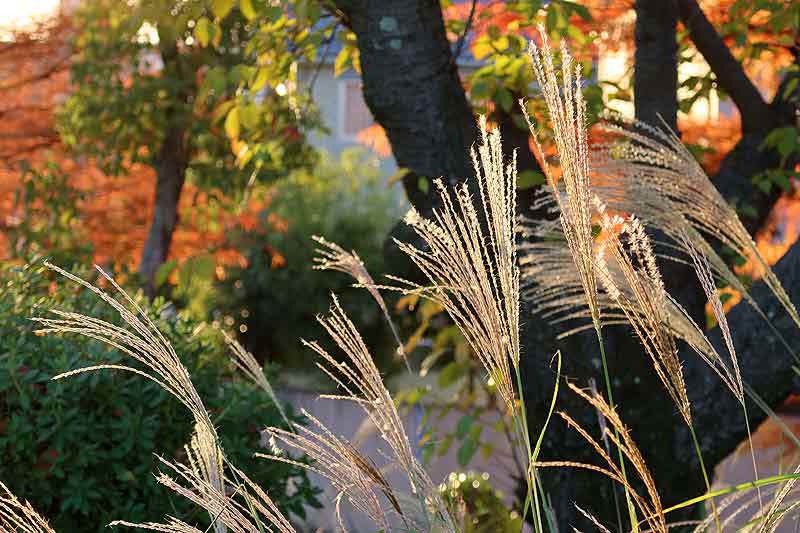 朝日を浴びたススキ、輝く感じで良いものですよね。