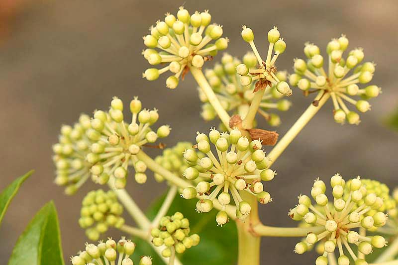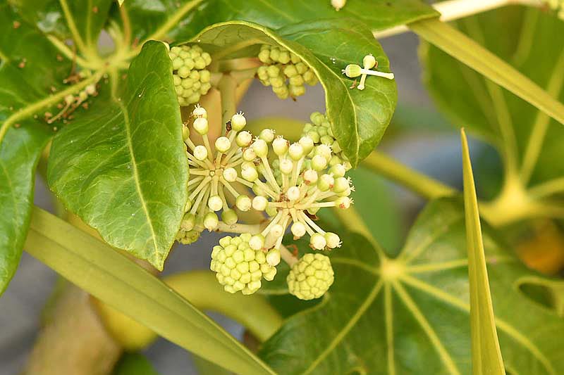 ヤツデ、まだ蕾のようなお花と、雌花が見えるようですね。