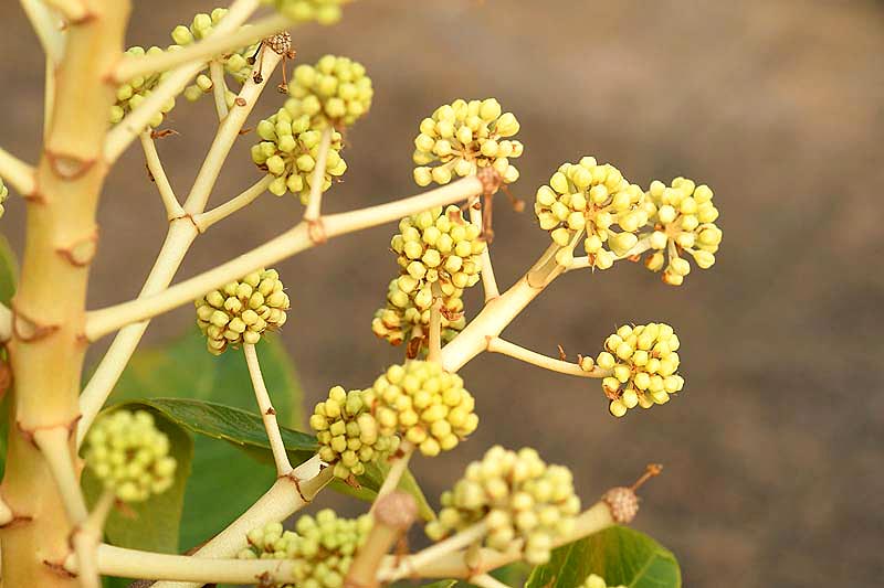 ヤツデの花、蕾の部分と雄蕊が散ってしまった部分があり、奇麗なお花の状態では無かったです。