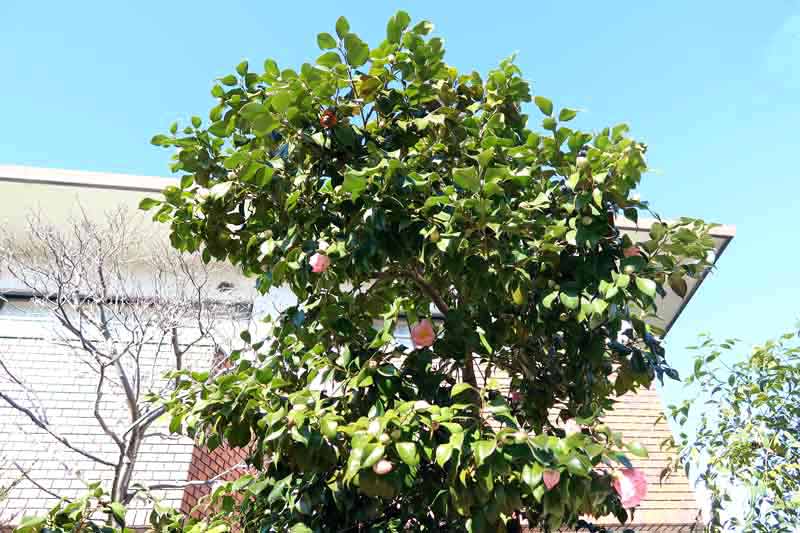 我が家の鉢植えのツバキと、お花は似ているのですが、この後がどのような花姿になるのか、それで同じ種類かどうか分かると思います。このお宅のは、かなりの大きな木でした。