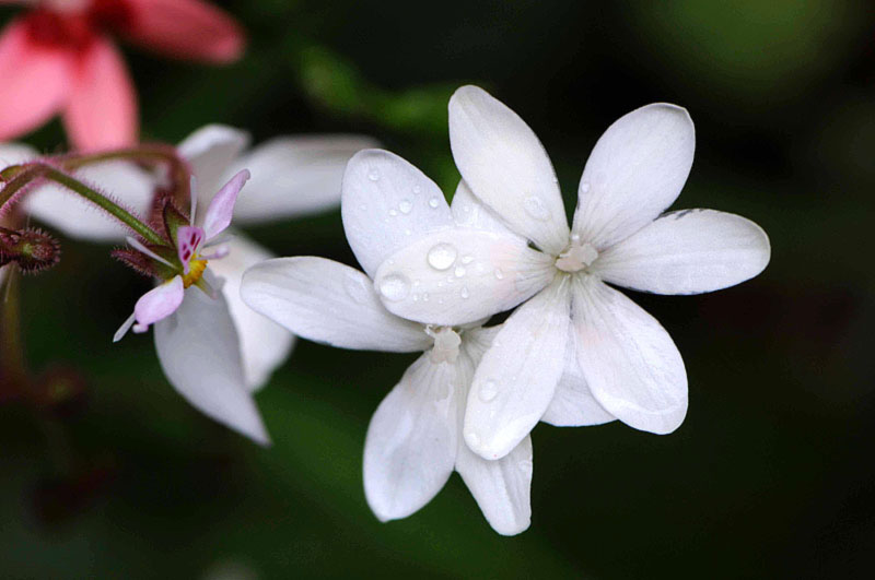 純白の花は、白い花びらの中心が赤いのが色抜けしたものだと思いますよ。
