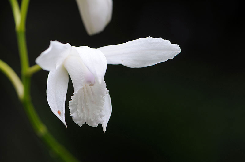 3)こちらも白い花の「紫蘭」ですが、ほんのりと花弁の先に色合いが付き、薄いですが「クチベニシラン」の一種かと・・?